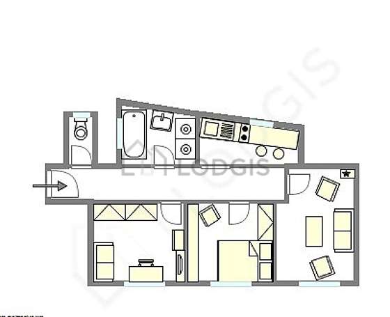 SalónEste apartamento está formado por un salón con parquet en el suelo y ventanas doble acristalamiento y una vista a la calle. Este salón tranquilo está amueblado y equipado para que su estancia sea agradable : televisor, 2 sillones, mesa, mesita, ropero, biblioteca, armario empotrado, chimenea, 1 silla(s)1 sofá cama.