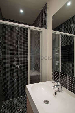 Este apartamento posee una cocina con parquet en el sueloy todo el equipamiento necesario para su vida diaria : placas eléctricas, refrigerador, congelador, horno micro-ondas, vajilla.