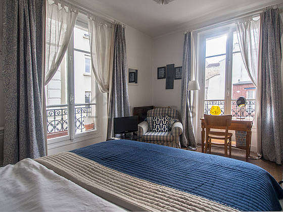 Con parquet en el suelo y ventanas doble acristalamiento y una vista a al patio, esta habitación acogedora y espaciosa ofrece el equipamiento necesario para descansar durante su estancia : televisor, sábanas, edredones, 1 sillones, mesa de estudio, ropero, armario empotrado, 1 silla(s)1 cama.