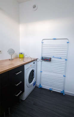 Este apartamento posee una bonito cocina con azulejo en el sueloy todo el equipamiento necesario para su vida diaria : placas eléctricas, refrigerador, congelador, horno micro-ondas, campana extractora, tostador, cafetera, armario empotrado, vajilla, taburete, bar.