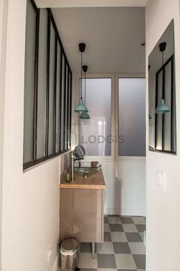 Este apartamento tiene una sala de baño magnífica y clara with ventanas doble acristalamiento. Este baño tiene todo lo necesario para su bienestar diario : toallas, ducha, secador de pelo, radiador seca-toallas. El WC está integrado en la sala del baño.