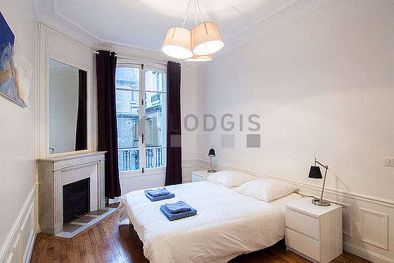 Con parquet en el suelo y ventanas y una vista a la calle, esta habitación acogedora ofrece el equipamiento necesario para descansar durante su estancia : sábanas, edredones, estantería, cómoda, mesita de noche1 cama.
