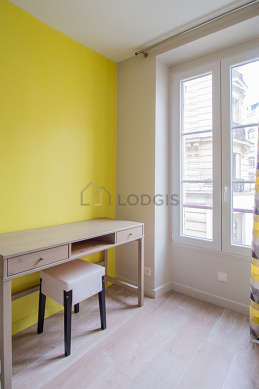 Con parquet en el suelo y ventanas doble acristalamiento y una vista a la calle, esta habitación espléndida ofrece el equipamiento necesario para descansar durante su estancia : sábanas, edredones, mesa de estudio, ropero, estantería, taburete1 litera(s).