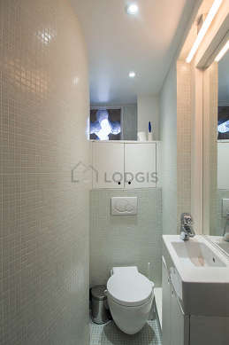 Este apartamento tiene una sala de baño agradable y clara with ventanas. Este baño tiene todo lo necesario para su bienestar diario : toallas, estantería, armario empotrado, ducha, secador de pelo, radiador seca-toallas. El WC está separado de la sala del baño y ubicado en un espacio independiente.