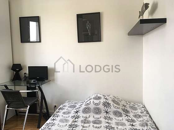 Este apartamento está formado por un salón con parquet en el suelo y ventanas doble acristalamiento. Este salón muy tanquilo está amueblado y equipado para que su estancia sea agradable : televisor, sábanas, edredones, mesa de estudio, ropero, estantería, armario, 2 silla(s)1 sofá cama.