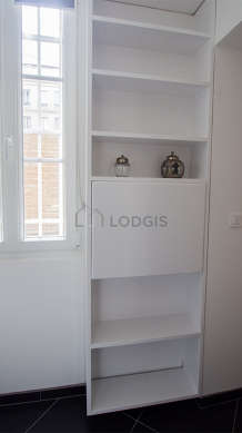 Este apartamento está formado por un salón con parquet en el suelo y ventanas doble acristalamiento y una vista a al patio. Este salón muy tanquilo está amueblado y equipado para que su estancia sea agradable : televisor, sábanas, edredones, mesa, mesita, mesa de estudio, ropero, estantería, armario empotrado, taburete, curtains1 sofá cama.