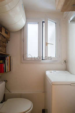 Este apartamento tiene una sala de baño. Este baño tiene todo lo necesario para su bienestar diario : toallas, estantería, bañera, secador de pelo, radiador seca-toallas. El WC está separado de la sala del baño y ubicado en un espacio independiente.