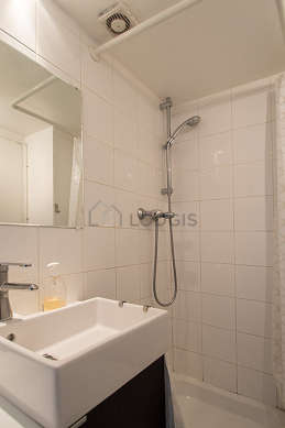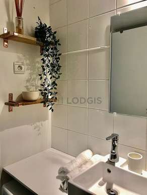 Este apartamento está formado por un salón con parquet en el suelo y ventanas doble acristalamiento y una vista a al patio. Este salón tranquilo está amueblado y equipado para que su estancia sea agradable : televisor, sábanas, edredones, mesa, mesita, ropero, estantería, armario empotrado, 1 silla(s)1 cama.