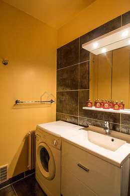 Este apartamento tiene una sala de baño agradable. Este baño tiene todo lo necesario para su bienestar diario : toallas, bañera, secador de pelo, radiador seca-toallas. El WC está separado de la sala del baño y ubicado en un espacio independiente.