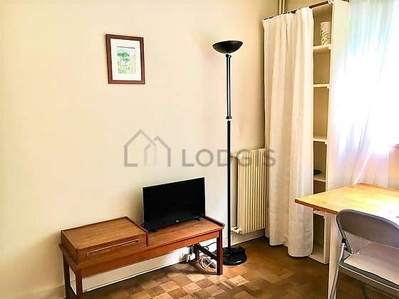 Este apartamento está formado por un salón con parquet en el suelo y ventanas y una vista a al patio. Este salón muy tanquilo está amueblado y equipado para que su estancia sea agradable : televisor, mesa, mesita, estantería, armario, 2 silla(s)1 sofá cama.