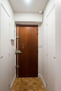 Este apartamento está formado por un salón con parquet en el suelo y ventanas doble acristalamiento y una vista a al patio. Este salón tranquilo está amueblado y equipado para que su estancia sea agradable : televisor, sábanas, edredones, mesita, ropero, estantería, armario empotrado, taburete1 sofá cama, 1 armario cama.