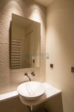 Este apartamento tiene una sala de baño agradable. Este baño tiene todo lo necesario para su bienestar diario : toallas, armario empotrado, ducha, secador de pelo, radiador seca-toallas. El WC está separado de la sala del baño y ubicado en un espacio independiente.