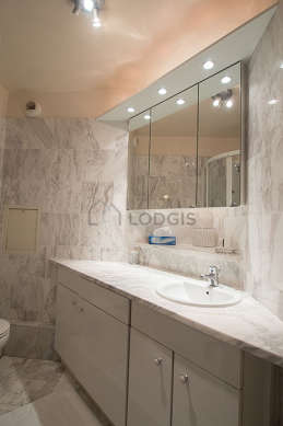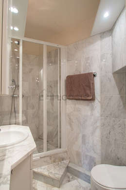 Este apartamento tiene una sala de baño agradable. Este baño tiene todo lo necesario para su bienestar diario : toallas, armario empotrado, ducha. El WC está integrado en la sala del baño.