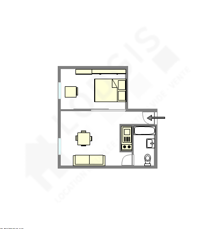 Este apartamento está formado por un salón con parquet en el suelo y ventanas doble acristalamiento. Este salón muy tanquilo está amueblado y equipado para que su estancia sea agradable : sofá, 1 sillones, mesita, armario empotrado, 3 silla(s).