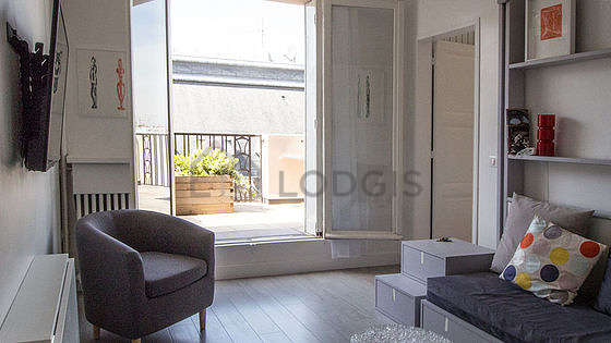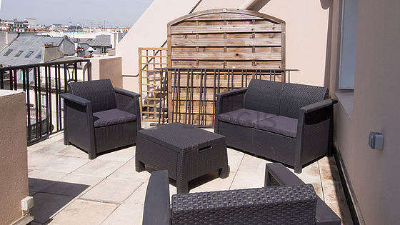TerrazaCon azulejo en el suelo, la terraza de este apartamento os encantará. Este espacio exterior tranquilo y muy luminoso y equipado con 2 sillones, mesa, mesita, 4 silla(s) podrá aprovechar plenamente de su estancia en París, sobre todo los días soleados.