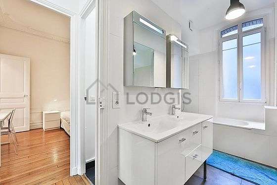 Este apartamento tiene una sala de baño magnífica with ventanas doble acristalamiento. Este baño tiene todo lo necesario para su bienestar diario : toallas, armario empotrado, bañera, secador de pelo. El WC está integrado en la sala del baño.