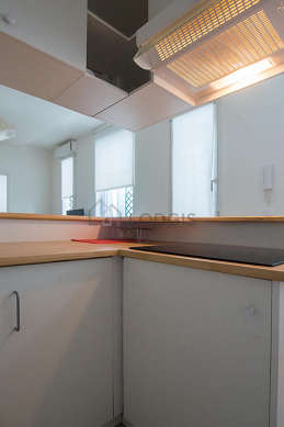 Este apartamento posee una bonito cocina con azulejo en el sueloy todo el equipamiento esencial para su vida diaria : placas eléctricas, refrigerador, congelador, horno micro-ondas, campana extractora, tostador, hervidor, cafetera, vajilla.