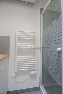Este apartamento tiene una sala de baño agradable y clara with ventanas. Este baño tiene todo lo necesario para su bienestar diario : armario empotrado, ducha, radiador seca-toallas. El WC está separado de la sala del baño y ubicado en un espacio independiente.