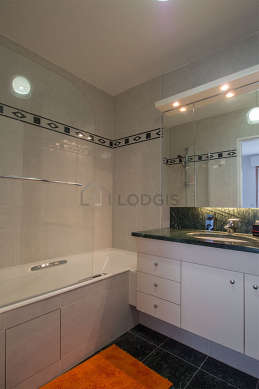 Este apartamento tiene una sala de baño agradable. Este baño tiene todo lo necesario para su bienestar diario : toallas, armario empotrado, secador de pelo, sink, radiador seca-toallas. El WC está separado de la sala del baño y ubicado en un espacio independiente.