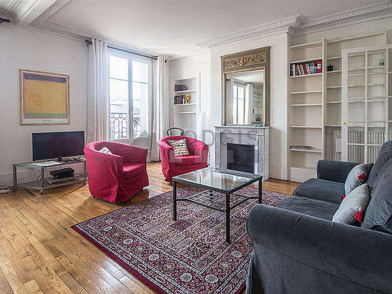 Este apartamento está formado por un salón con parquet en el suelo y ventanas doble acristalamiento, un balcon y una vista a la calle. Este salón tranquilo está amueblado y equipado para que su estancia sea agradable : televisor, 2 sillones, mesa, mesita, estantería, aparador, 4 silla(s), curtains1 sofá cama.
