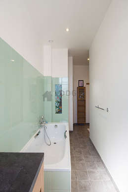 Este apartamento tiene una sala de baño magnífica y muy clara with ventanas doble acristalamiento. Este baño tiene todo lo necesario para su bienestar diario : toallas, estantería, armario empotrado, bañera, ducha, sink, mirror, radiador seca-toallas. El WC está separado de la sala del baño y ubicado en un espacio independiente.