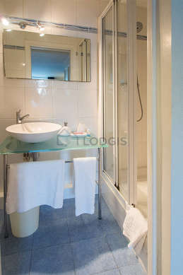 Este apartamento posee una cocina con azulejo en el sueloy todo el equipamiento necesario para su vida diaria : placas eléctricas, refrigerador, micro ondas, congelador, tostador, hervidor, cafetera, estantería, vajilla.