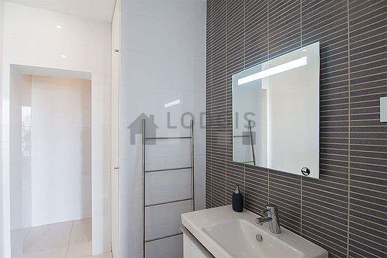 Este apartamento tiene una sala de baño magnífica y clara. Este baño tiene todo lo necesario para su bienestar diario : toallas, ducha, sink, radiador seca-toallas. El WC está separado de la sala del baño y ubicado en un espacio independiente.