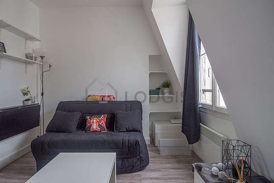 Este apartamento está formado por un salón con parquet en el suelo y ventanas doble acristalamiento. Este salón tranquilo está amueblado y equipado para que su estancia sea agradable : televisor, sábanas, edredones, mesa, armario empotrado, 1 silla(s)1 sofá cama.