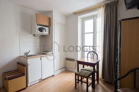 Este apartamento está formado por un salón con parquet en el suelo una vista a la calle. Este salón tranquilo está amueblado y equipado para que su estancia sea agradable : televisor, sábanas, edredones, mesa, mesita, ropero, armario empotrado, 1 silla(s)1 sofá cama.