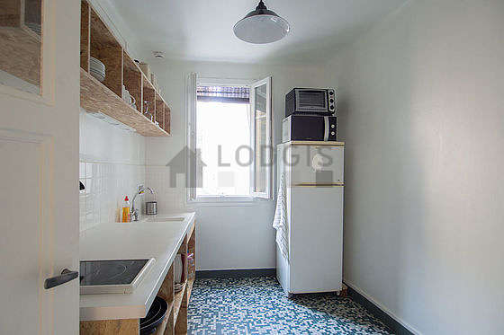 Este apartamento posee una magnífica cocina con azulejo en el sueloy todo el equipamiento esencial para su vida diaria : placas eléctricas, refrigerador, horno, micro ondas, tostador, hervidor, cafetera, estantería, armario empotrado, vajilla.