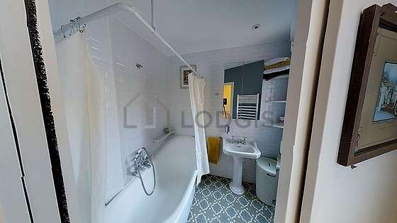 Este apartamento tiene una sala de baño magnífica y clara with ventanas doble acristalamiento. Este baño tiene todo lo necesario para su bienestar diario : toallas, estantería, bañera, sink, radiador seca-toallas. El WC está separado de la sala del baño y ubicado en un espacio independiente.
