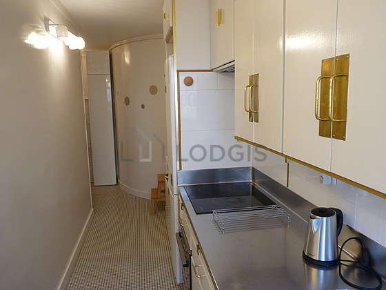 Este apartamento posee una magnífica cocina con azulejo en el sueloy todo el equipamiento indispensable para su vida diaria : placas eléctricas, refrigerador, congelador, micro ondas, campana extractora, tostador, hervidor, cafetera, vajilla.