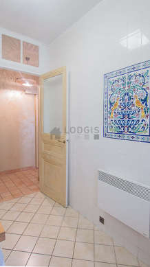 Este apartamento posee una bonito cocina con azulejo en el sueloy todo el equipamiento necesario para su vida diaria : placas eléctricas, refrigerador, congelador, horno micro-ondas, campana extractora, tostador, hervidor, cafetera, vajilla.