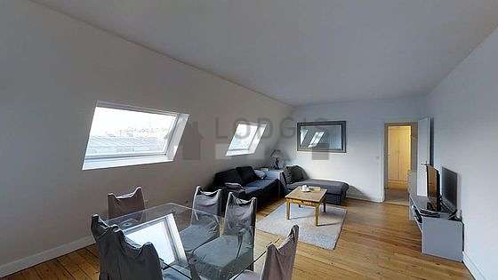 Este apartamento está formado por un salón con parquet en el suelo una vista a la calle. Este salón muy tanquilo está amueblado y equipado para que su estancia sea agradable : televisor, sofá, mesa, mesita, biblioteca, 6 silla(s).