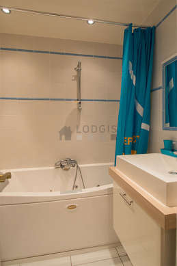 Este apartamento tiene una sala de baño agradable y clara. Este baño tiene todo lo necesario para su bienestar diario : toallas, armario empotrado, bañera, sink. El WC está separado de la sala del baño y ubicado en un espacio independiente.