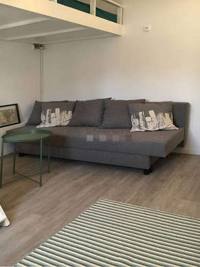 Este apartamento está formado por un salón con parquet en el suelo. Este salón muy tanquilo está amueblado y equipado para que su estancia sea agradable : sábanas, edredones, mesita, 1 silla(s)1 cama en altura, 1 sofá cama.