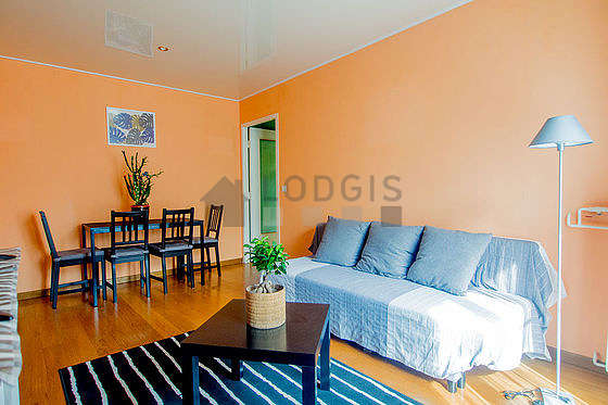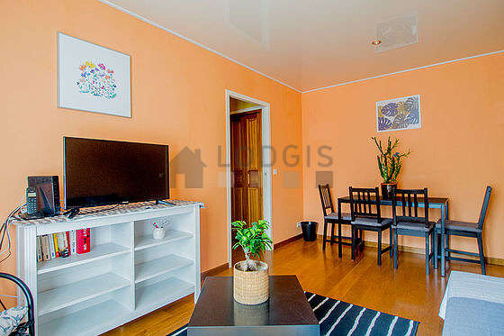 Este apartamento está formado por un salón con parquet en el suelo una vista a al patio. Este salón muy tanquilo está amueblado y equipado para que su estancia sea agradable : televisor, mesa, ropero, cómoda, armario empotrado, 4 silla(s)1 cama.