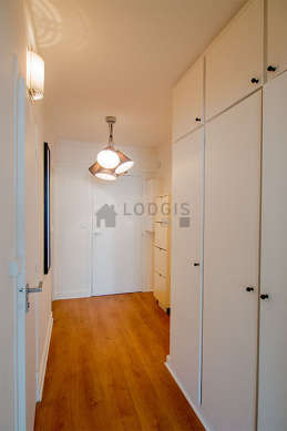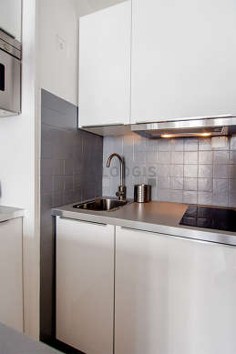 Este apartamento posee una magnífica cocina con azulejo en el sueloy todo el equipamiento esencial para su vida diaria : placas eléctricas, refrigerador, horno micro-ondas, congelador, estantería, armario empotrado, vajilla, taburete, bar.