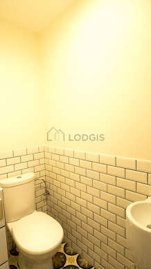 Este apartamento tiene una sala de baño magnífica. Este baño tiene todo lo necesario para su bienestar diario : toallas, estantería, armario empotrado, ducha, sink. El WC está separado de la sala del baño y ubicado en un espacio independiente.