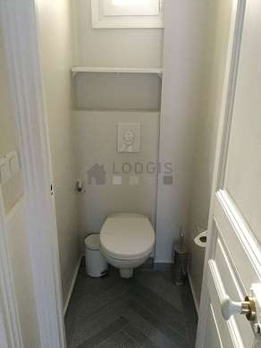 Este apartamento tiene una sala de baño agradable y clara with ventanas doble acristalamiento. Este baño tiene todo lo necesario para su bienestar diario : toallas, estantería, armario empotrado, ducha, secador de pelo, sink, radiador seca-toallas. El WC está separado de la sala del baño y ubicado en un espacio independiente.