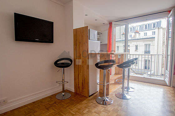TerrazaCon baldosas en el suelo, la terraza expuesta hacia el suroeste de este apartamento os encantará. Este espacio exterior muy tanquilo y muy luminoso y equipado con mesa, 1 silla(s) será un verdadero 'plus' para su estancia en París, sobre todo los días soleados.