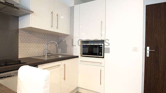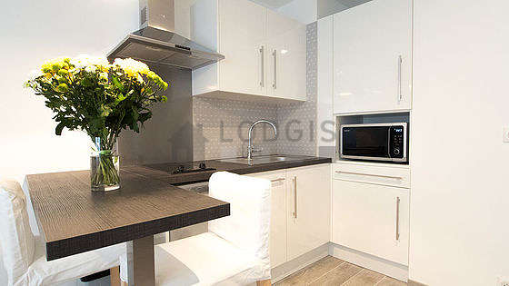 Este apartamento posee una magnífica cocina con parquet en el sueloy todo el equipamiento esencial para su vida diaria : placas eléctricas, refrigerador, horno micro-ondas, congelador, campana extractora, tostador, hervidor, cafetera, mesa, vajilla, 2 silla(s).