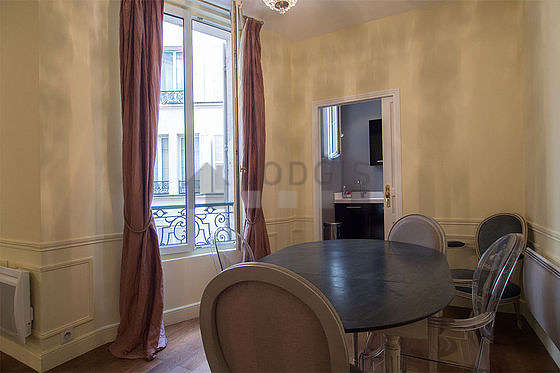 Con el fin de compartir vuestras comidas en un ambiente distendido durante su estancia parisina, este apartamento posee un agradable comedor que podrá reunir hasta 4 invitados gracias a 4 sillones, mesa, 2 silla(s).