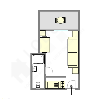 Este apartamento posee una cocina con linoleum en el sueloy todo el equipamiento indispensable para su vida diaria : placas eléctricas, refrigerador, horno micro-ondas, congelador, hervidor, cafetera, estantería, armario empotrado, vajilla.