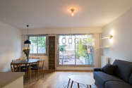Este apartamento está formado por un salón con parquet en el suelo una vista a la calle. Este salón muy tanquilo está amueblado y equipado para que su estancia sea agradable : mesa, mesita, 4 silla(s)1 sofá cama.