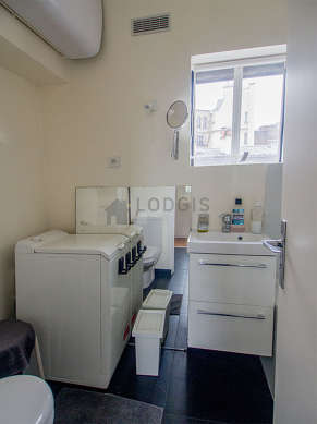 Este apartamento posee una magnífica cocina con azulejo en el sueloy todo el equipamiento esencial para su vida diaria : placas eléctricas, refrigerador, micro ondas, congelador, campana extractora, tostador, mesa, estantería, armario, armario empotrado, vajilla, taburete, bar.