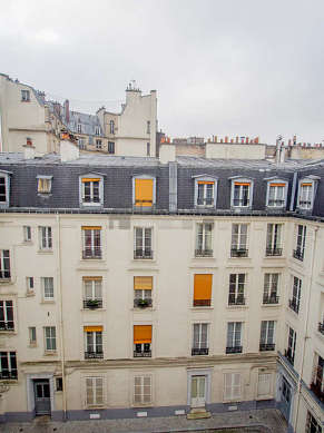 Este apartamento está formado por un salón con parquet en el suelo una vista a al patio. Este salón muy tanquilo está amueblado y equipado para que su estancia sea agradable : sábanas, edredones, sofá, 1 sillones, mesa, mesa de estudio, ropero, estantería, armario, cómoda, armario empotrado, 1 silla(s)1 sofá cama.