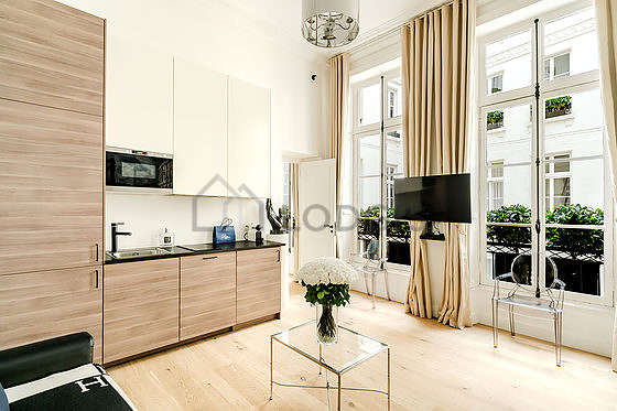 Appartement meublé à Paris d'environ 40m2, situé dans le 1er arrondissement de Paris - quartier Vendome, St Honoré, Louvre, Rivoli, dans un immeuble parisien de standing avec gardien, au 2ème étage avec ascenseur.