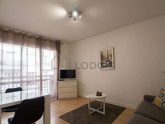 Este apartamento está formado por un salón con parquet en el suelo. Este salón muy tanquilo está amueblado y equipado para que su estancia sea agradable : televisor, mesa, mesita, cómoda, 2 silla(s)1 sofá cama.