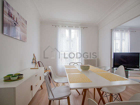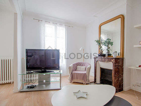 Este apartamento está formado por un salón con parquet en el suelo y ventanas y una vista a la calle. Este salón muy tanquilo está amueblado y equipado para que su estancia sea agradable : televisor, sofá, mesa, mesita, 6 silla(s).